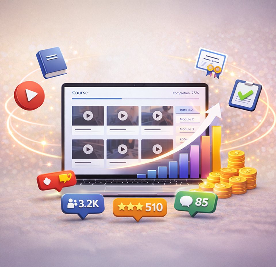 We design and build complete online courses that are engaging, well structured, and ready for launch across digital platforms.